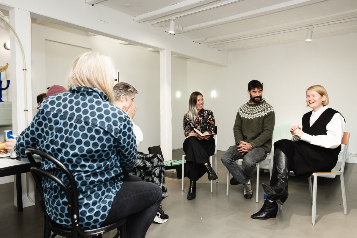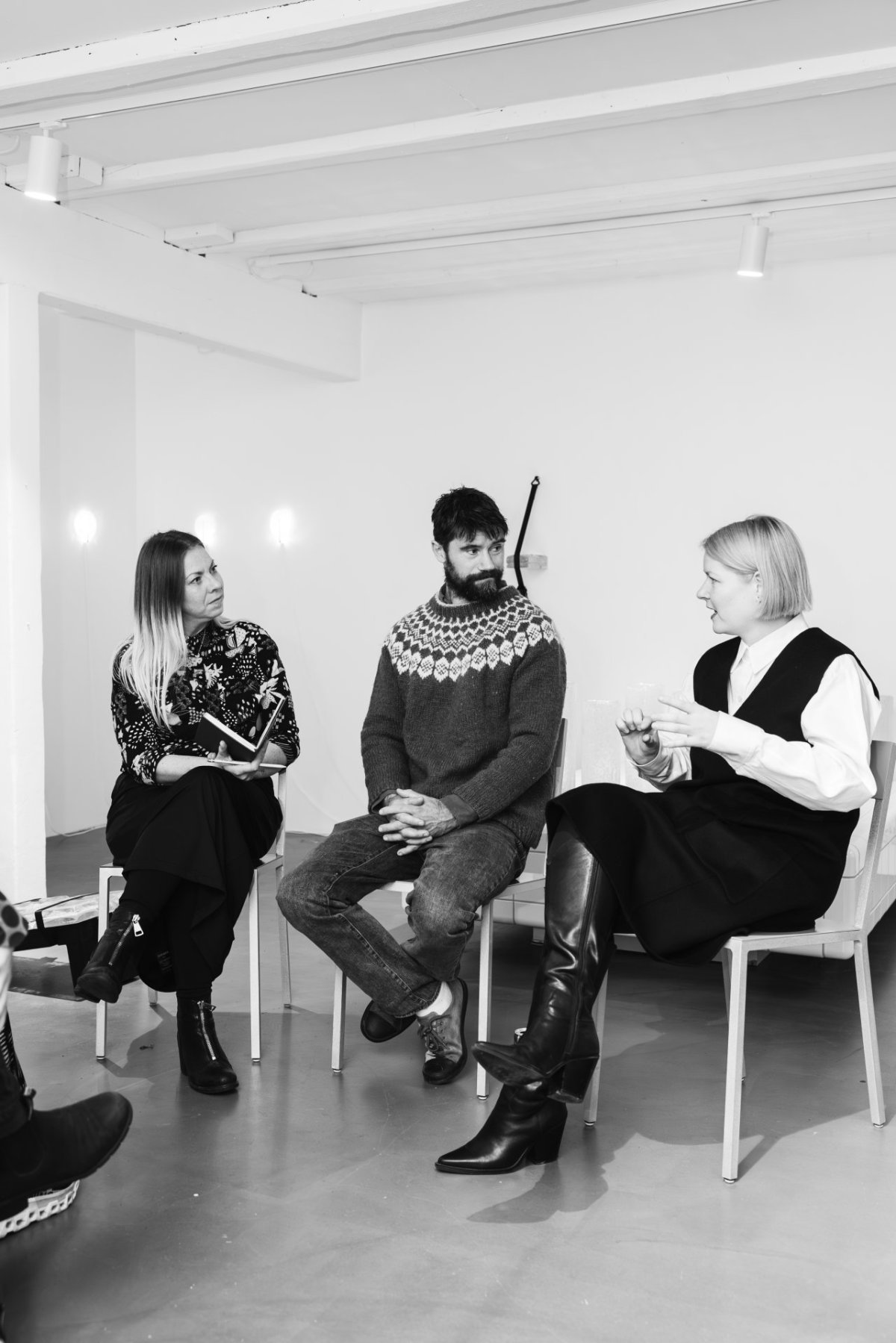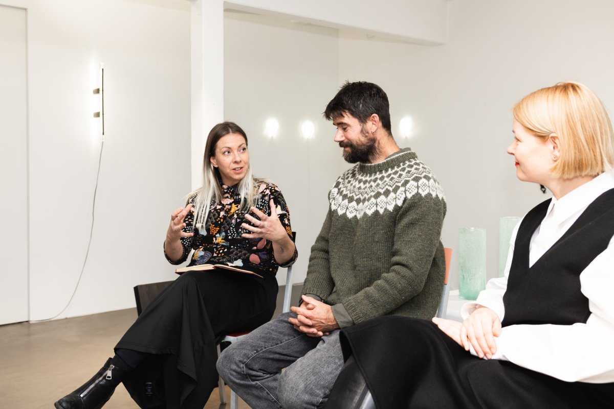 30. september síðasliðin var dásamlegur viðburður fyrir sýninguna VITRUM í H,A,K,K Gallery. Það kom Edda framkvæmdastjóri sér fyrir sem spyrill í skemmtilegu samtali við Johanna Seeleman og Anders Vagne um verkin, samstarfið og heimspekilega sýn sköpunar í dag.