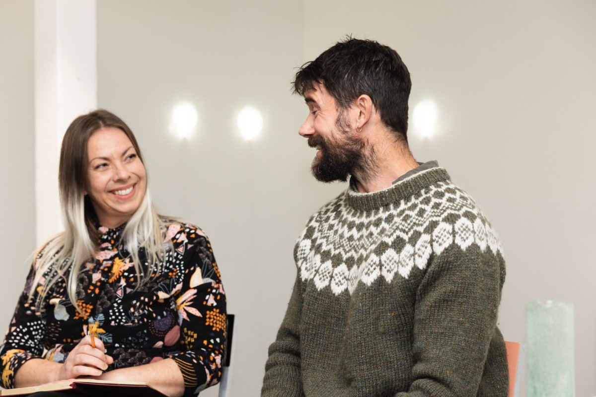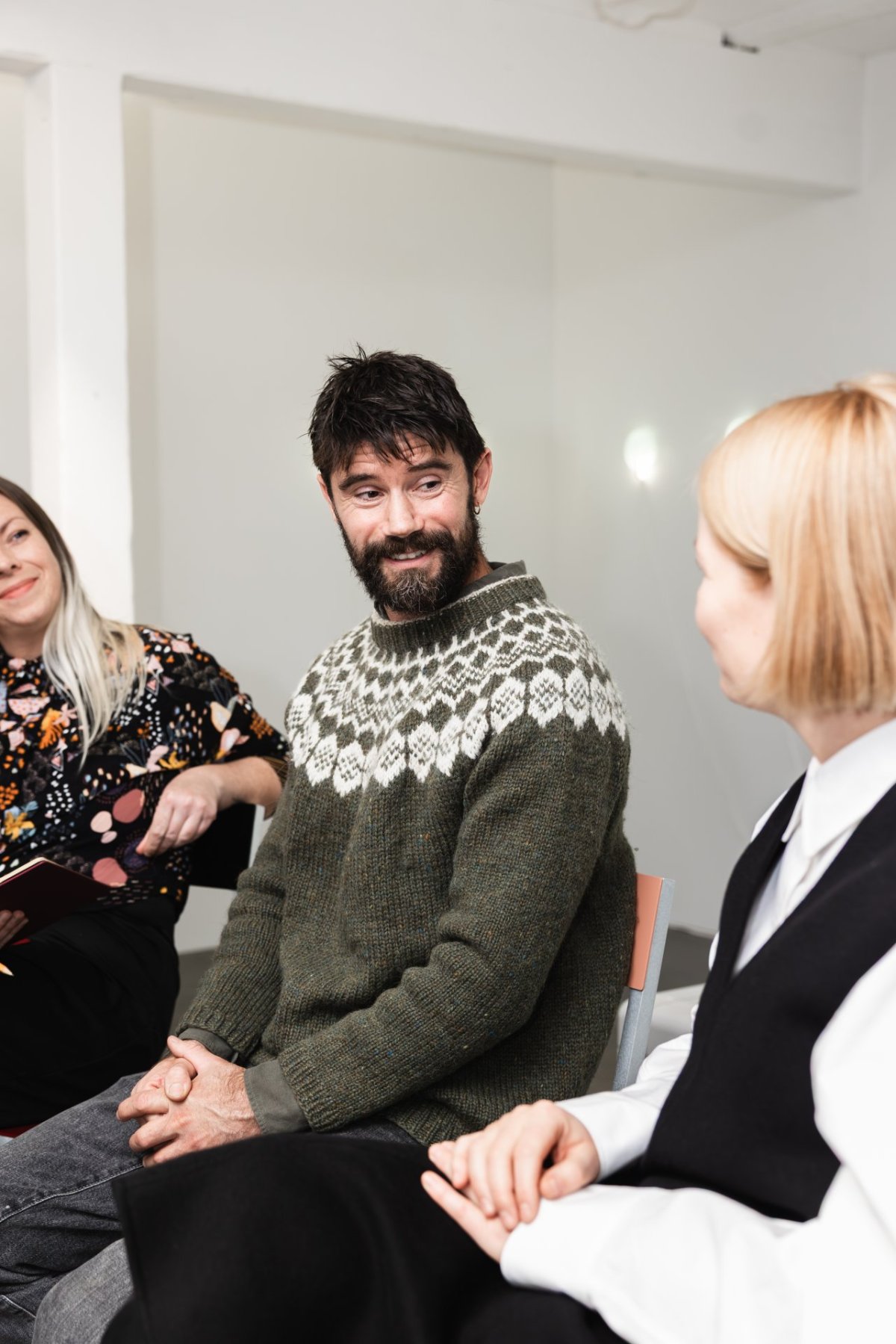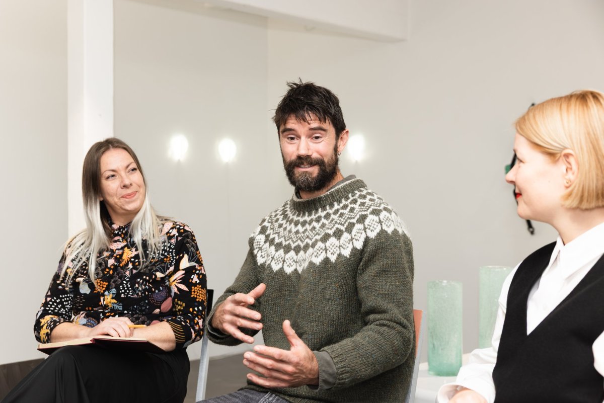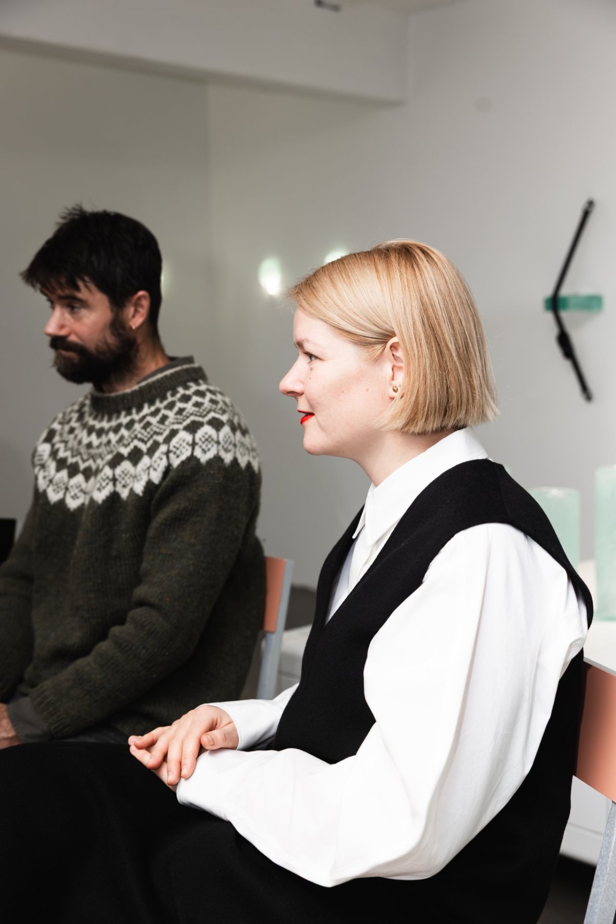 30. september síðasliðin var dásamlegur viðburður fyrir sýninguna VITRUM í H,A,K,K Gallery. Það kom Edda framkvæmdastjóri sér fyrir sem spyrill í skemmtilegu samtali við Johanna Seeleman og Anders Vagne um verkin, samstarfið og heimspekilega sýn sköpunar í dag.