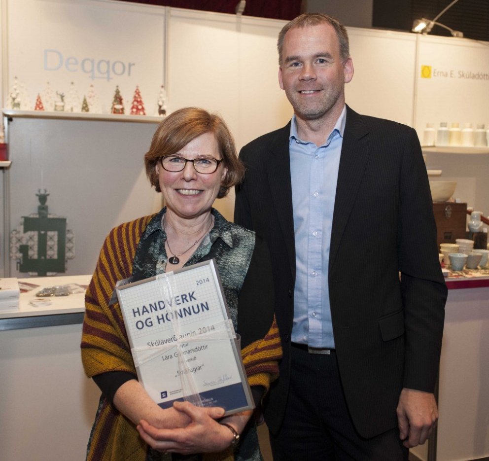 Lára Gunnarsdóttir hlaut Skúlaverðlaunin 2014 á sýningunni Handverk og hönnun í Ráðhúsi Reykjavíkur. Verðlaunin hlaut Lára Gunnarsdóttir fyrir handgerða smáfugla úr birki. Lára er ein af okkar fremstu listhandverksmönnum og hefur starfað í mörg ár. Hún er með mjög skemmtilegan og persónulegan stíl og vinnur eingöngu úr tré og þá oftast úr íslensku birki.